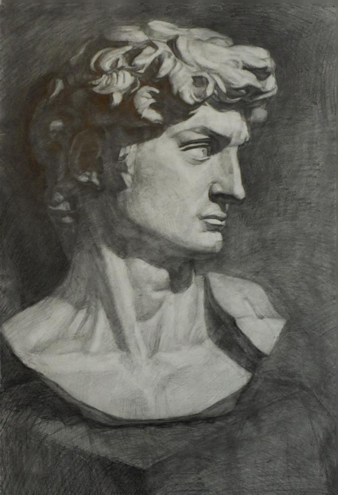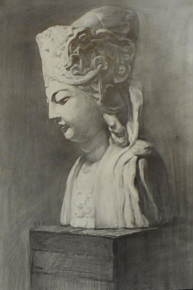 学生课堂石膏写生作品
