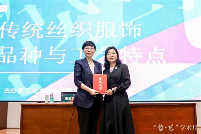 近日,设计学院邀请了中国丝绸博物馆陈列保管部主任王淑娟,在学校图信中心报告厅举办了《传统丝织服饰品种与工艺特点》的专题讲座。服装与服饰设计教研室全体师生参与此次讲座。设计学院党总支书记汪琳为主讲人王淑娟颁发荣誉证书。此次讲座由服装与服饰设计专业教研室主任巴蕾担任学术主持。