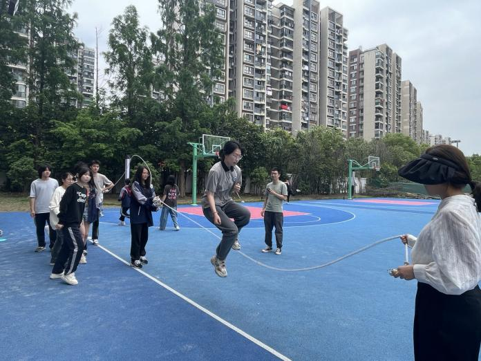 长绳联结起默契和友谊,跳跃展现青春与灵动,师生们以饱满的热情和精神状态投入到活动当中,共同挥洒着欢乐的汗水,享受运动后的惬意。
