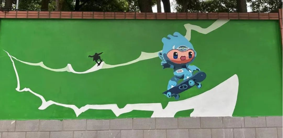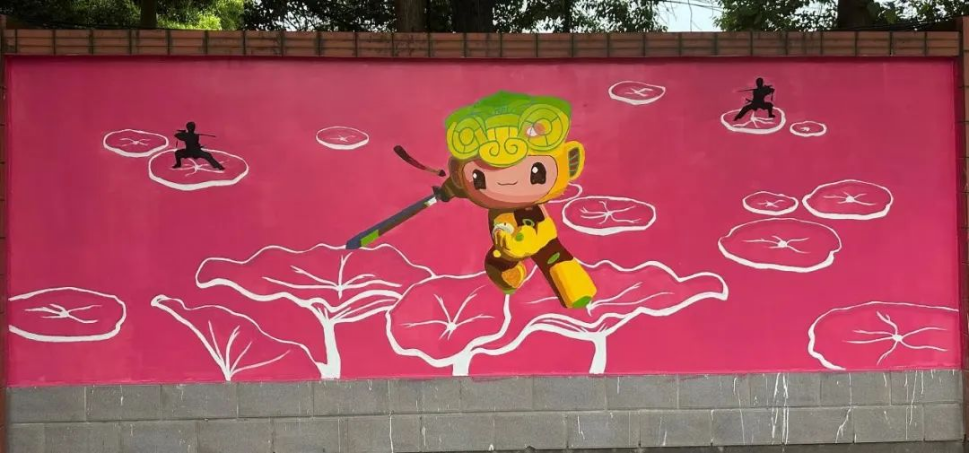 同学们将杭州亚运会吉祥物和杭州地标相结合,设计了墙绘草图方案,表现出独特的杭州韵味,展现了设计学子扎实的专业功底。