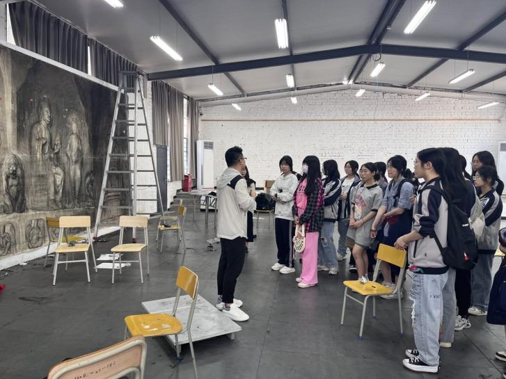 专业教师用参观展览与教学现场相结合的方式,向同学们讲解了绘画中常用的技巧,让同学们感受作品中变形与夸张的艺术手法、高超的线条能力及经过提炼的色彩表现,加深对绘画的理解,激发学习热情。