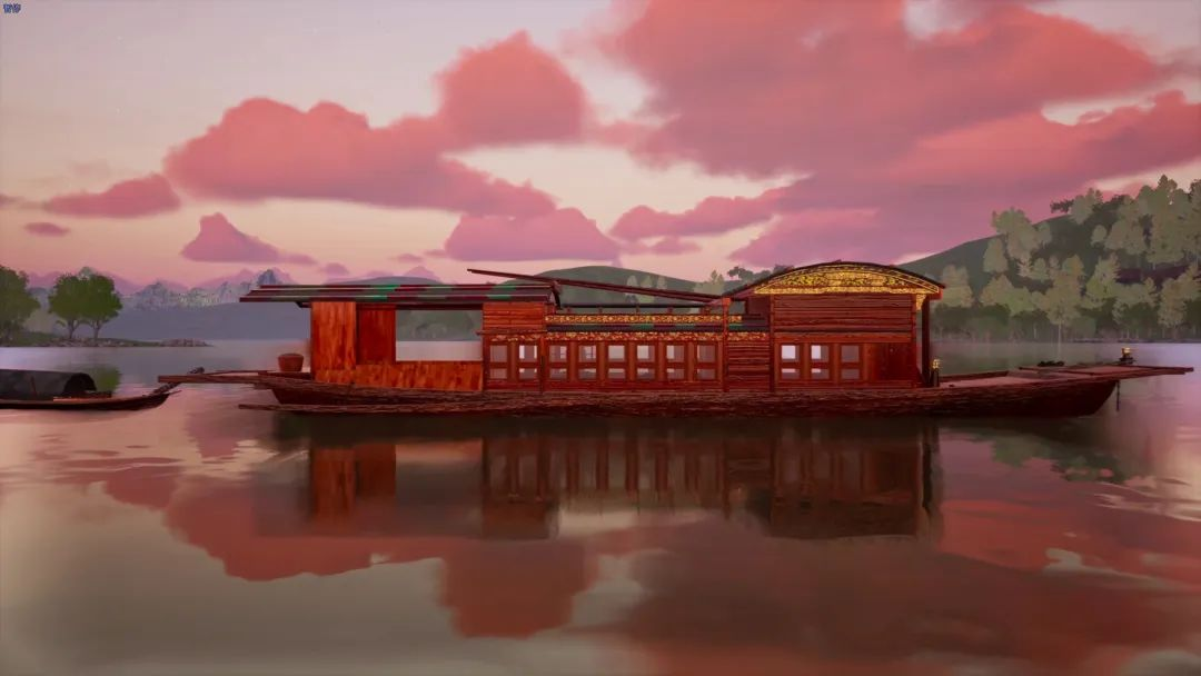 设计说明:短片《红船》是浙江省大学生科技创新项目“助力红色文化传播——基于UE4引擎的三维数字动画短片《红船》的创作研究”的阶段性成果。短片以嘉兴南湖红色文化为主题,运用三维建模和引擎渲染技术创作出南湖红船数字演示动画。主要描绘了中共“一大”会议转移到嘉兴南湖的一艘游船上完成了会议的最后阶段的情景。表现出一艘小船承载着历史使命扬帆起航的时刻。