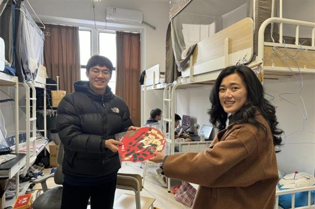 设计学院领导班子、全体班主任和辅导员走访学生寝室,细心查看宿舍环境,关注每一位学生的返校情况,询问学生的学习生活需求,为学生送上关怀。并叮嘱学生认真完成劳动教育,保持整洁干净的寝室卫生环境。老师们还精心准备了富含龙年元素的春联、挂件,写满了对学生的美好寄语,让浓浓的年味与深深的人文关怀交织在一起。