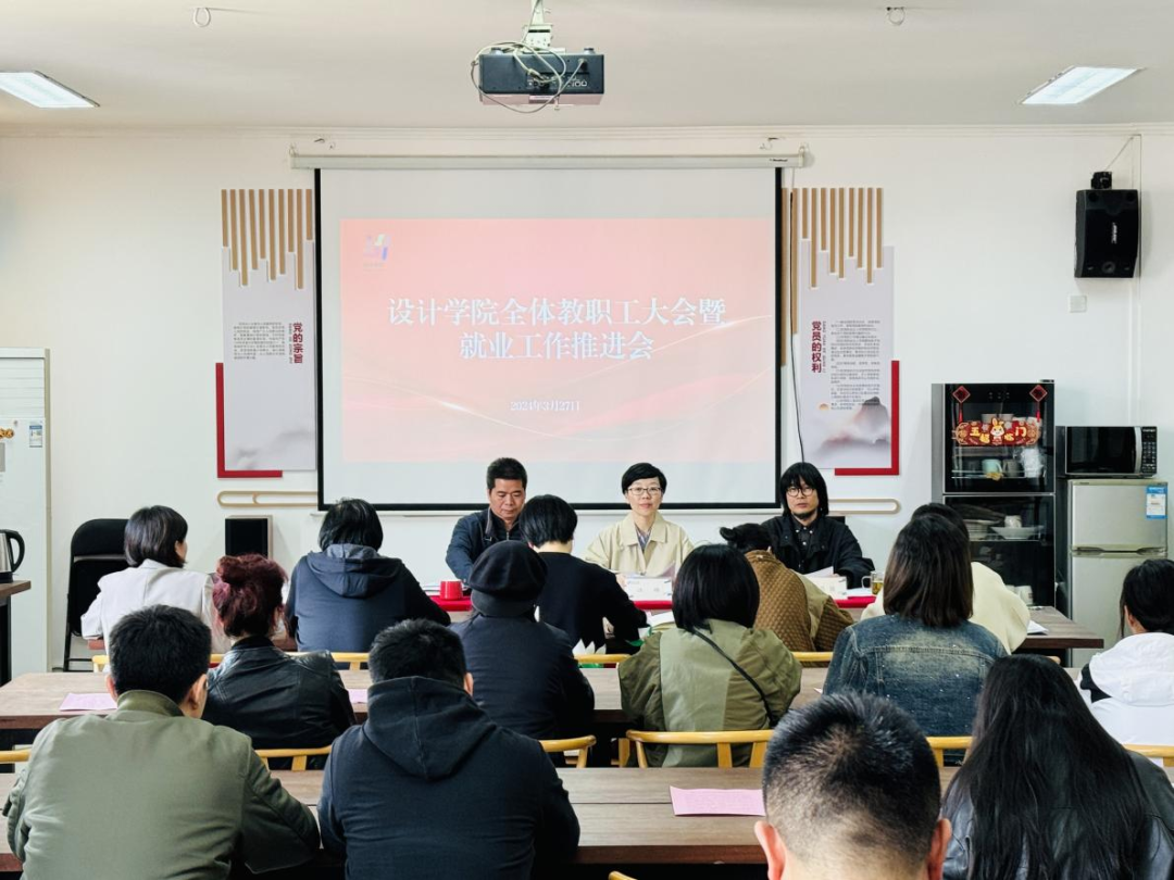 3月27日,设计学院全体教职工大会在4414召开。设计学院党总支书记汪琳、院长李昌国、党总支副书记汪仕龙出席会议,全体教职工参加。会议由李昌国主持。