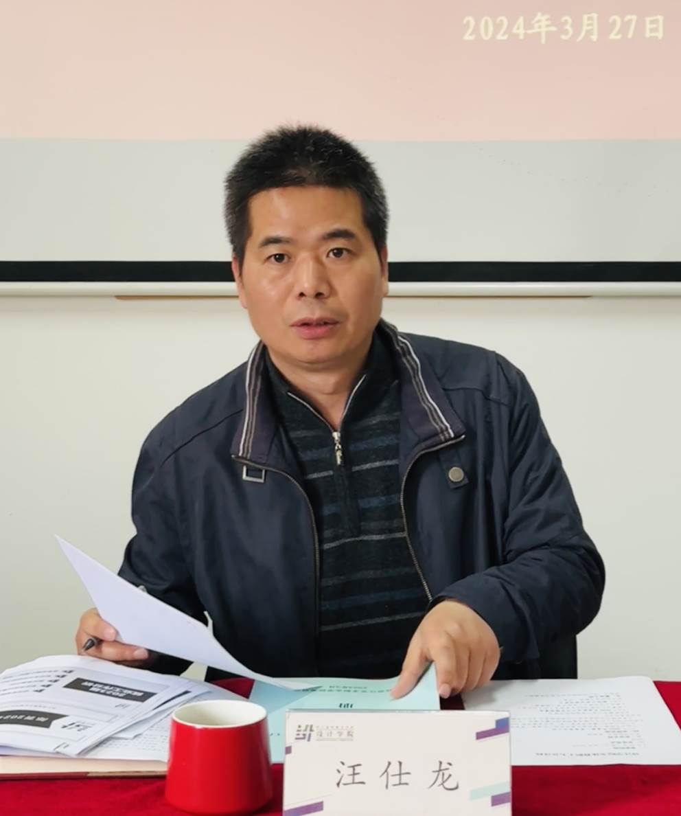 汪琳领学2024年全国两会精神。她指出,今年是中华人民共和国成立75周年,是实现“十四五”规划目标任务的关键一年。学院上下要将学习贯彻全国两会精神作为当前和今后一个时期的重要政治任务,把学习全国两会精神与学习贯彻习近平文化思想和关于教育的重要论述结合起来,巩固拓展主题教育成果,把学习成效转化为学院新一轮高质量发展的奋进力量。下一步,学院要以习近平总书记关于新质生产力的重要论述为指引,围绕学校“十四五”规划和学院“五金”建设方案,坚持稳中求进、以进促稳、先立后破,聚焦全面加强党的领导、推进专业内涵建设、加大人才引育力度、优化就业创业指导、深化校企合作项目等重点领域的工作要点,走稳学院工作高质高效发展步伐。